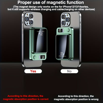 Hinne 5000/10000mAh Mobile Power Bank, 22.5W/PD20W Super Fast Charge, Magnetic Wireless Charging Bank, Portable Mobile Phone Charger For IPhone15pro/14max/13/12/ (USB, Type-c), With LED Power Display, Outdoor Emergency Power
