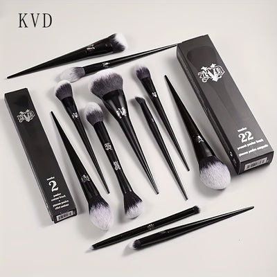 Kat Von D 3pcs Makeup Brush Set - Hypoallergenic Polyester Bristles, Elegant Black Handle, Multi-Purpose Oval Face Brushes for All Skin Types, ABS Plastic Rod, Professional Blending & Concealing Tools for Women